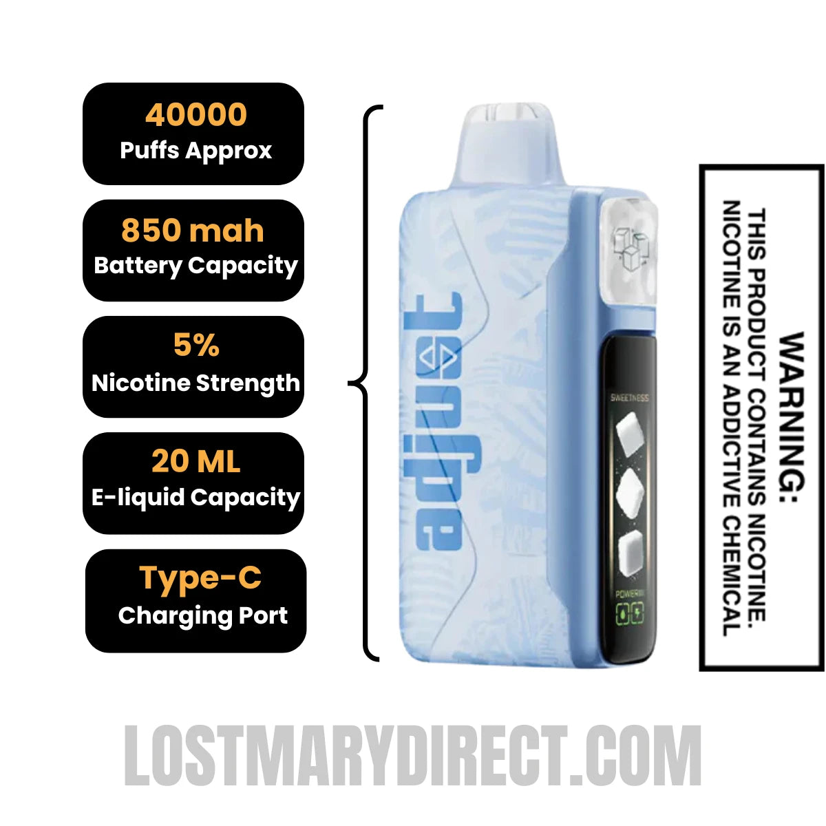 Blue Razz B Pop Adjust Mysweet 40k Disposable Vape sweeps you off your feet with an exhilarating burst of flavor. It is now available at Lostmary direct. Immerse yourself in the Blue Razz B Pop Vape, a thrilling blend that will delight your taste buds. With an impressive capacity of 20ml of e-liquid and approximately 40,000 puffs, this vape ensures that your vaping journey is long-lasting and utterly satisfying.