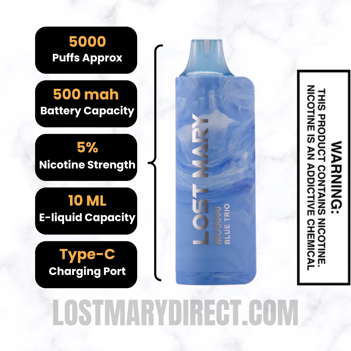 Blue Trio Lost Mary MO5000 Disposable Vape